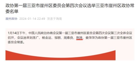 云仓酒庄董事长荆涛当选政协第一届三亚市崖州区委员会常委