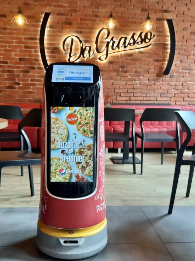 继普渡机器人与波兰壳牌、必胜客等达成合作,波兰又一家披萨品牌连锁店Da Grasso也引入了普渡机器人成员之一的配送迎宾机器人“葫芦”。