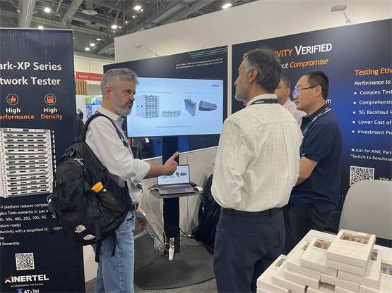 展会首日,信而泰丰富的展品矩阵和多样化的网络测试解决方案吸引了众多参展观众驻足咨询、交流洽谈。