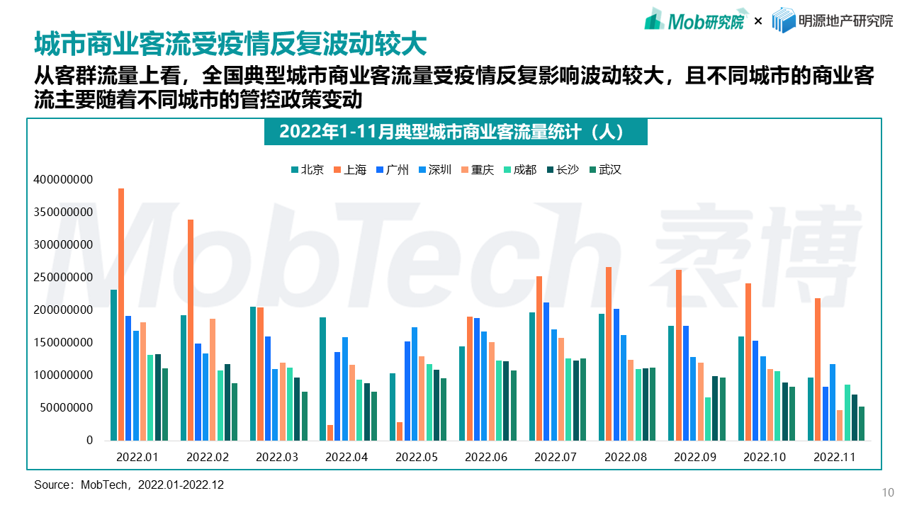 从客群流量上看,全国典型城市商业客流量受疫情反复影响波动较大,且不同城市的商业客流主要随着不同城市的管控政策变动;