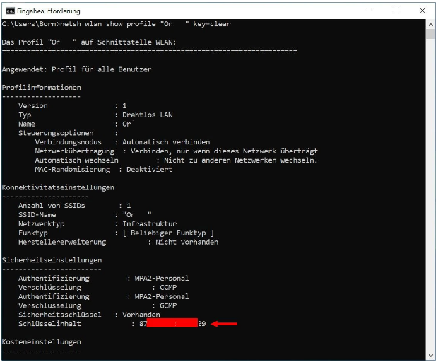 netsh wlan show profile key=clear