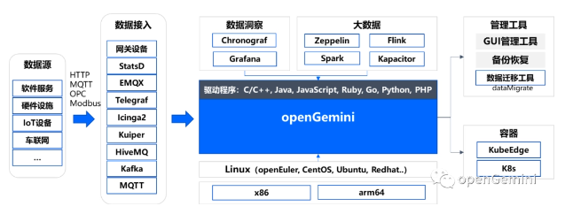 在云原生方面,openGemini已支持K8s、KubeEdge容器化部署,并正在积极与KubeEdge社区进行联合创新。openGemini还支持主流的Linux系统和x86、arm64等架构,同时也支持C/C++、Java、Javascript、Ruby、GO、Python、PHP等主流的开发语言,可为用户提供完整的时序数据库解决方案。