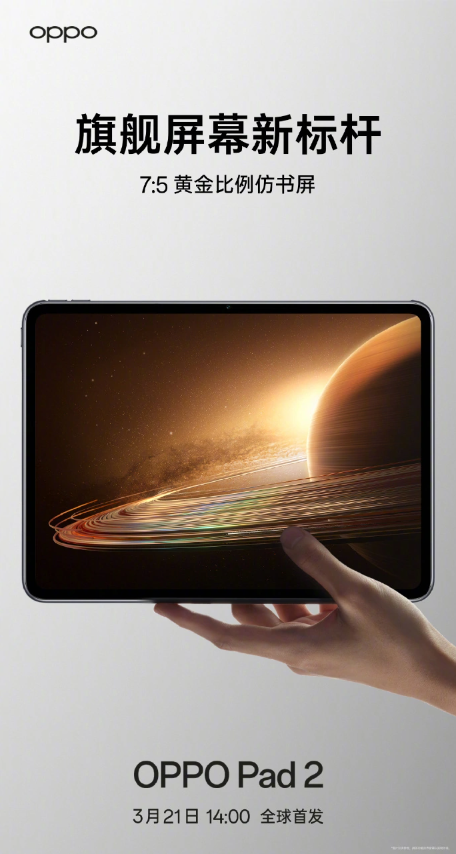全球首发!OPPO Pad 2平板电脑将于3月21日发布