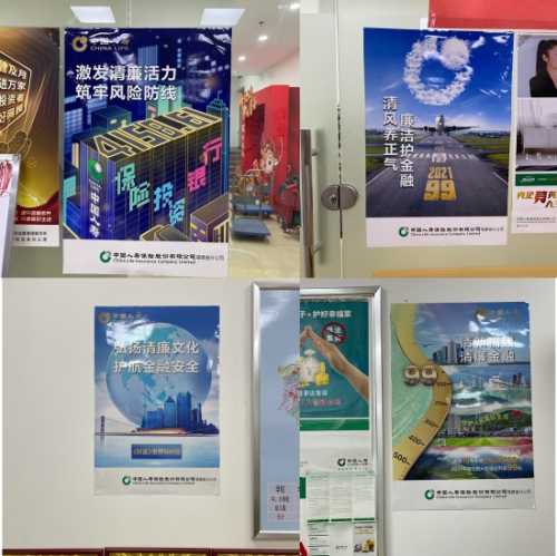 公司还利用职场早会向从业人员进行宣传教育,增强自我的廉洁修养,理解廉洁对良好金融环境建设的重要性,积极践行社会责任,发挥表率作用。职场及营业厅内张贴宣传海报,向销售人员及客户宣导廉洁理念,增强宣传教育的实效性和灵活性,传递清廉金融正能量,努力营造良好的金融环境。
